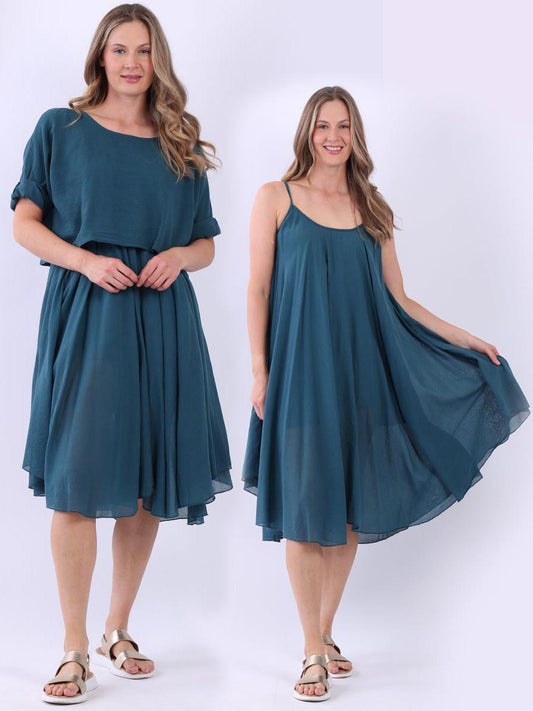 Dual Style Ladies Cotton Lagenlook Cami Summer Dress