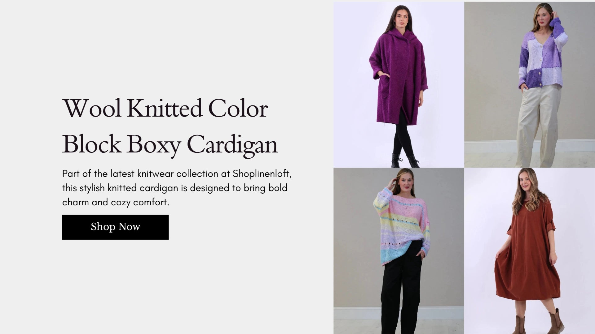 Embrace effortless style with this woolen cardigan from Shoplinenloft,s new knitwear collection. Designed with a bold multi color block pattern, this made in Italy cardigan brings together comfort and versatility. The front button fastening allows easy layering, while the relaxed drop shoulders and long ribbed sleeves give it a modern, laid-back silhouette. Featuring a neat ribbed hem, this cardigan is a cozy yet fashion-forward staple for the upcoming season.