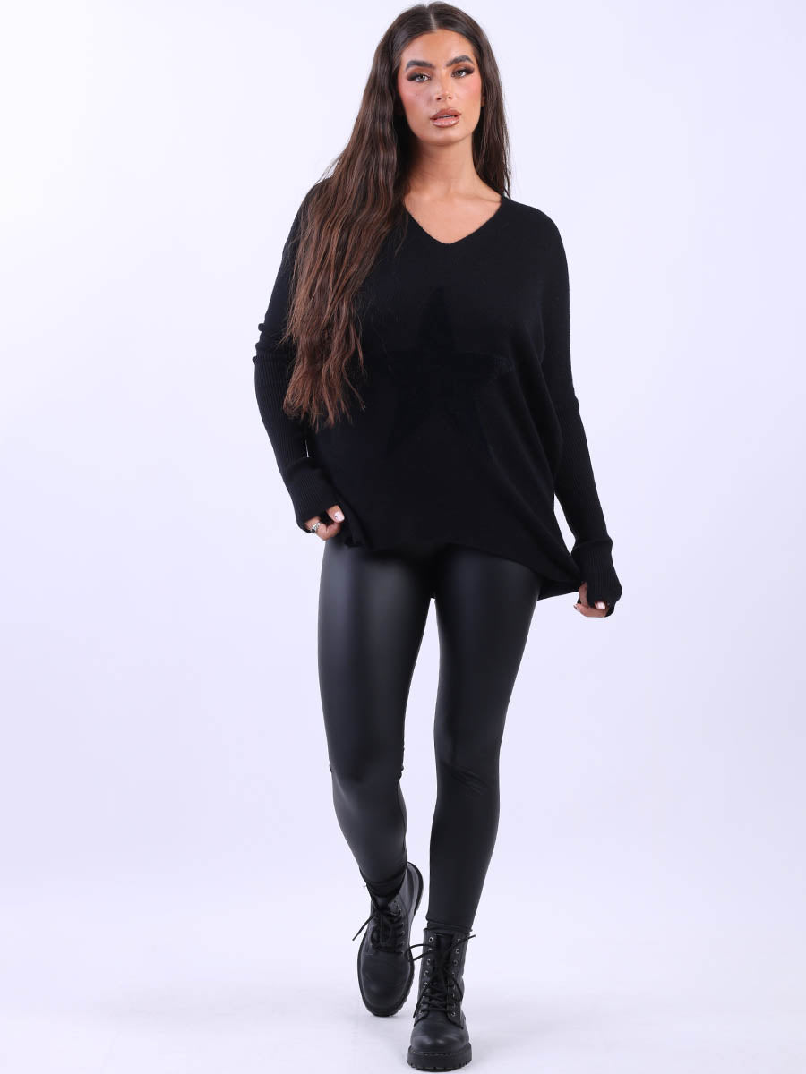 Italian Knitted Star Print Plus Size Ladies Jumper