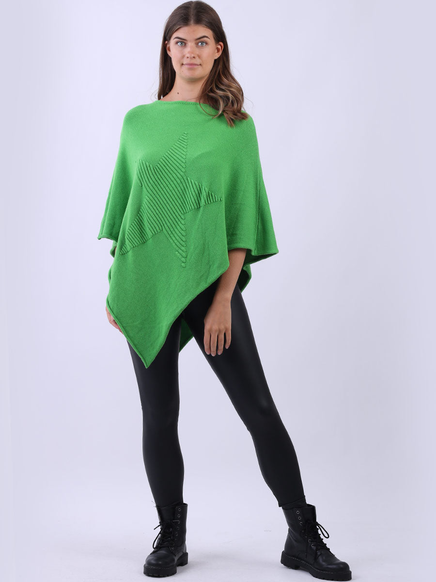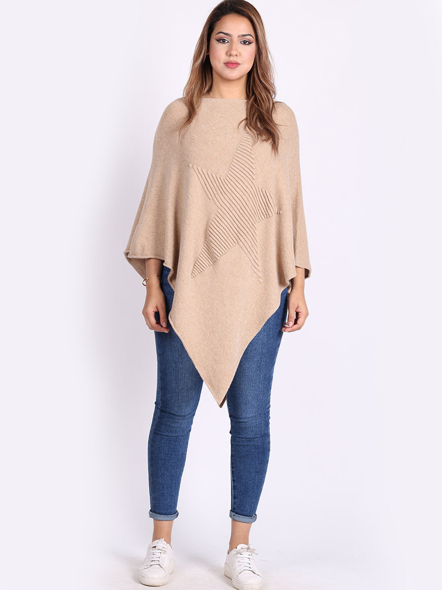Embrace comfort and style with Made In Italy clothing Poncho, featuring a chic boat neck and a unique ribbed star pattern. Its asymmetric hem adds a fashionable touch to this knitted poncho, making it a versatile addition to your wardrobe. Discover a world of stylish ladies' clothes from latest winter knitwear collection.