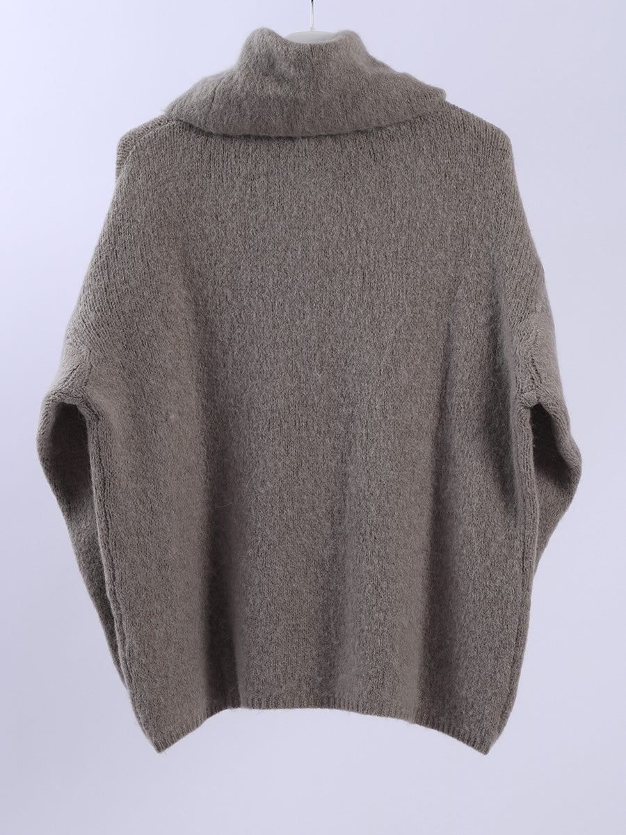 This cowl-neck woolen jumper is all about effortless sophistication. Made in Italy, it is the cozy winter pick every woman needs. The baggy fit and solid color make it perfect to wear solo or layer under a sleek leather jacket. It is simple, classy, and designed to keep you feeling warm and chic all season long.