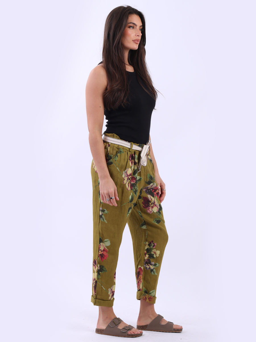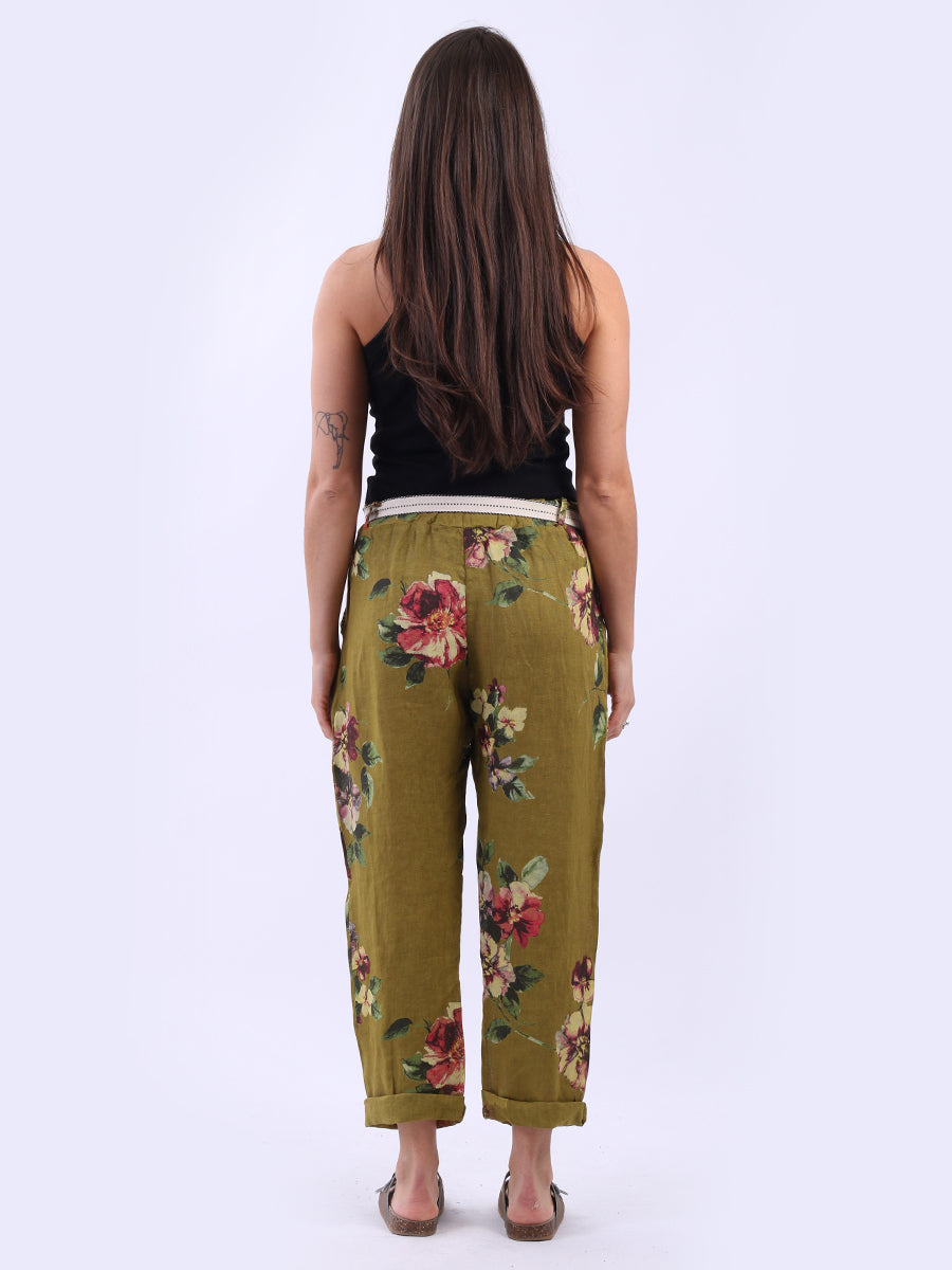 Ladies Floral Print Linen Relaxed Fit Trouser