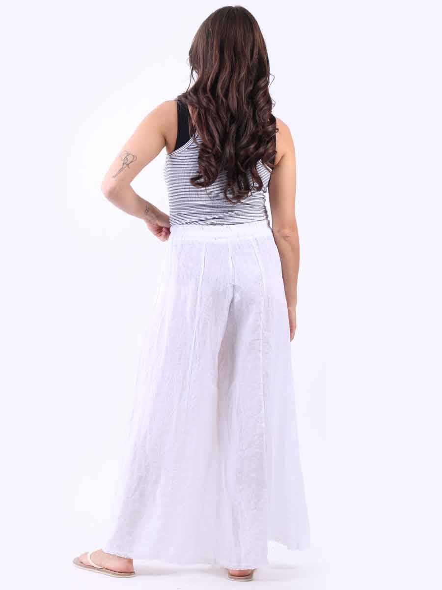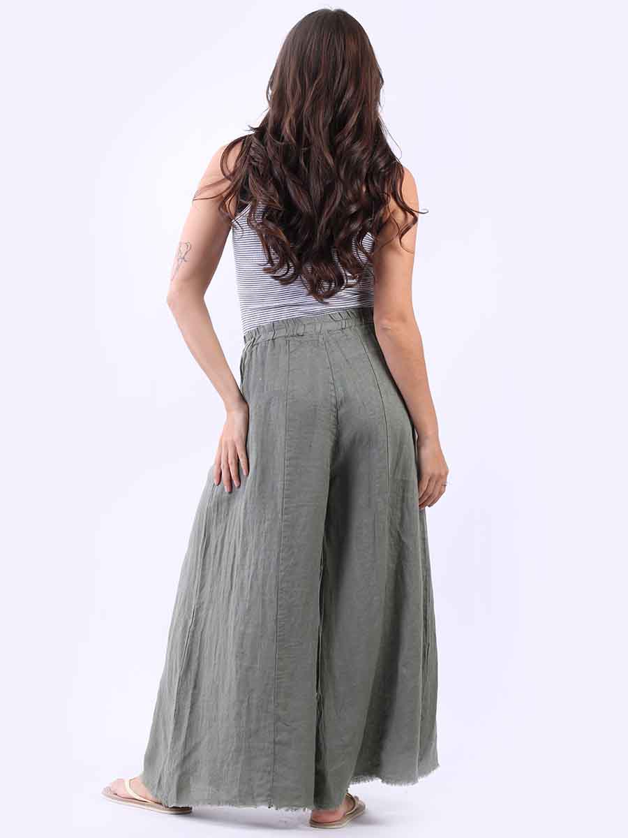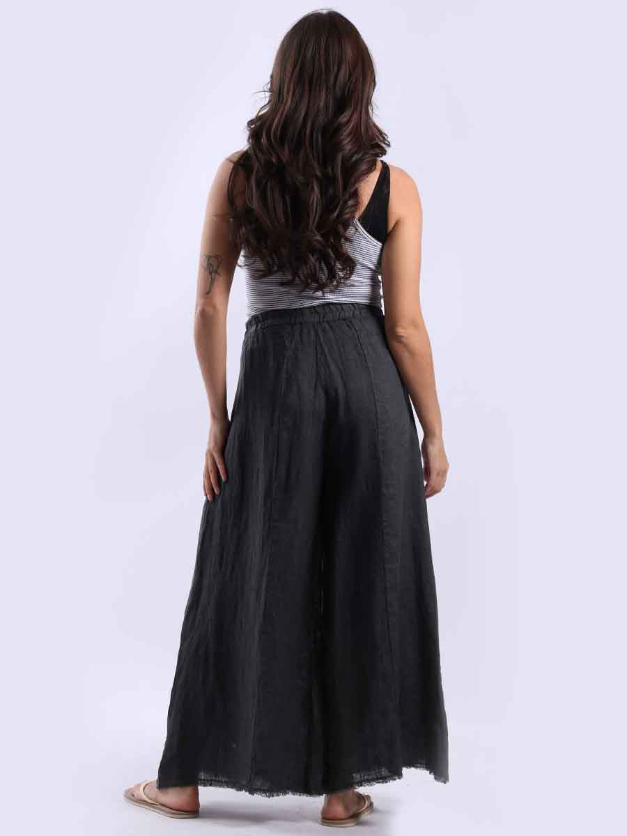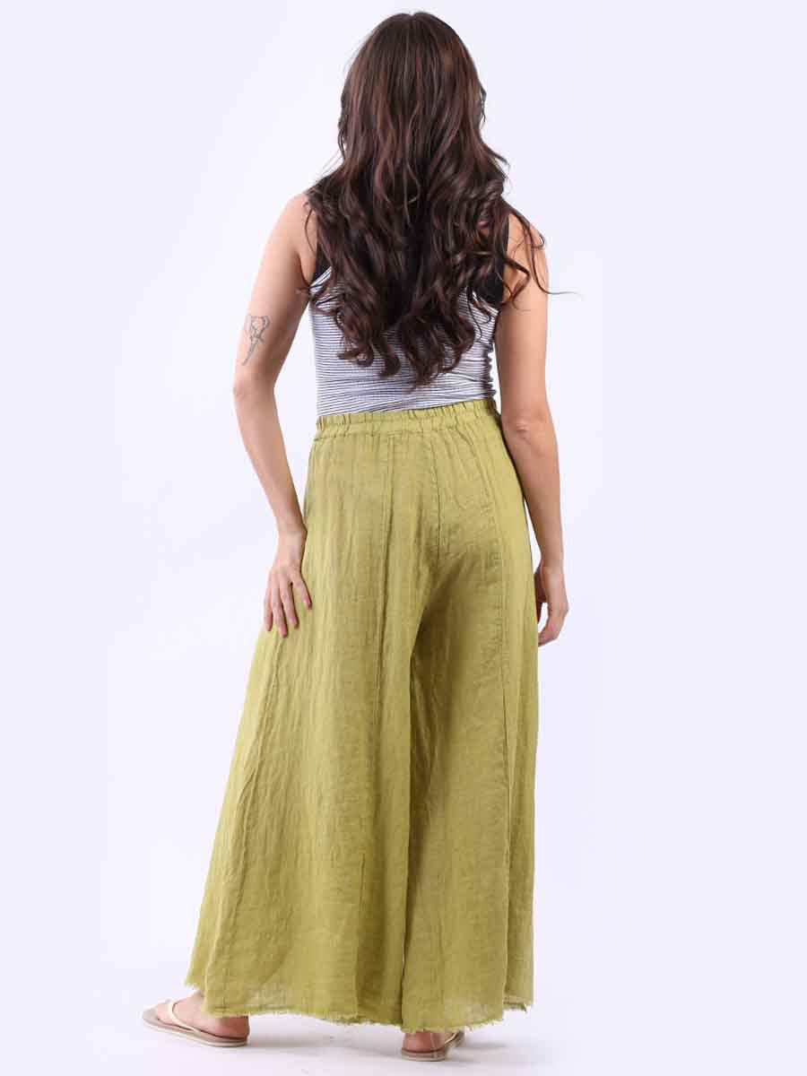 This refined Italian-made trouser, designed by Fashion boutique USA, has everything you need to elevate your everyday wardrobe. It is tailored from pure linen fabric for unmatched breathability and softness with basic features like an elastic waist, functional front pocket, and subtle raw edges. If you are looking for simplicity and sophistication in every outfit, these plain palazzos are a must-have addition to your wardrobe.