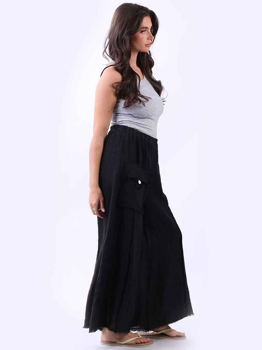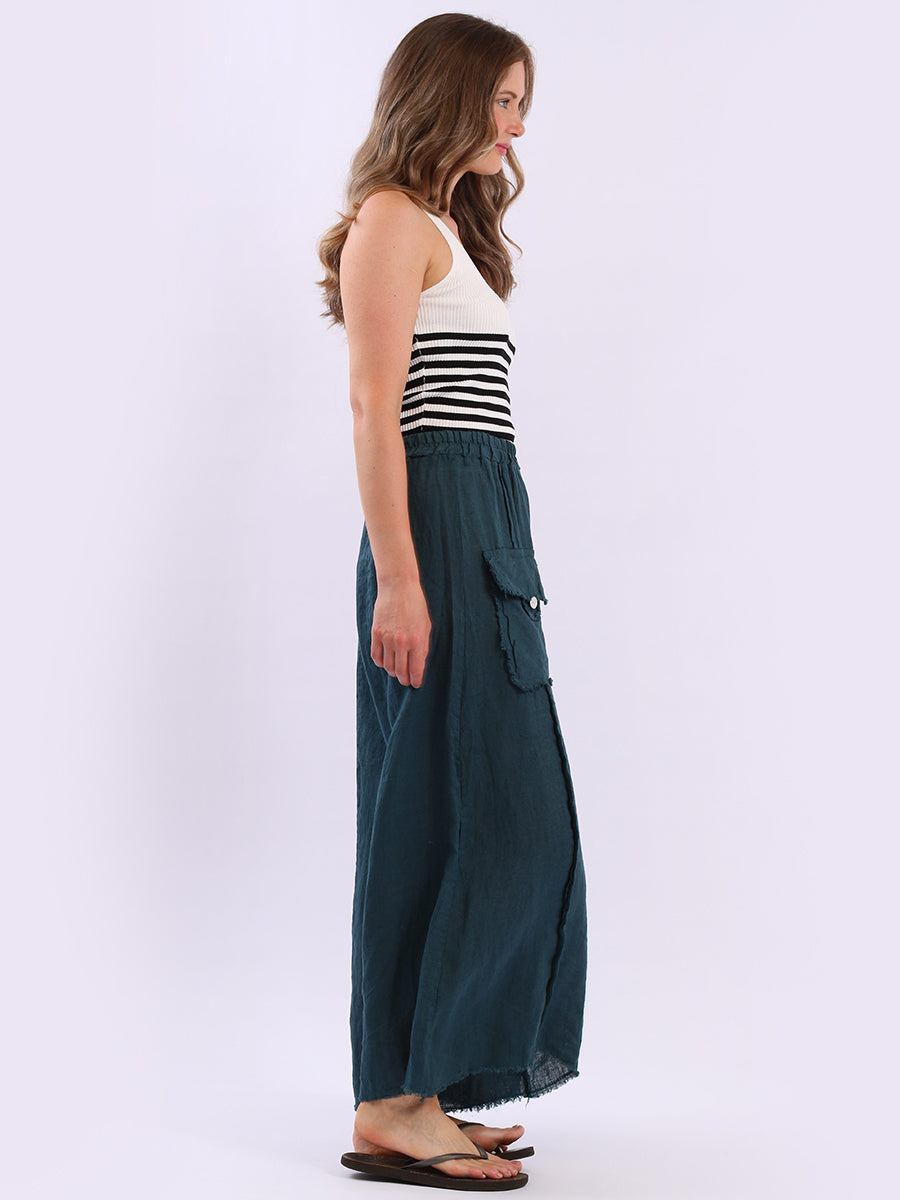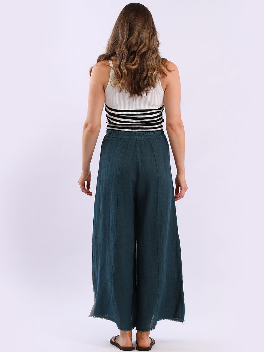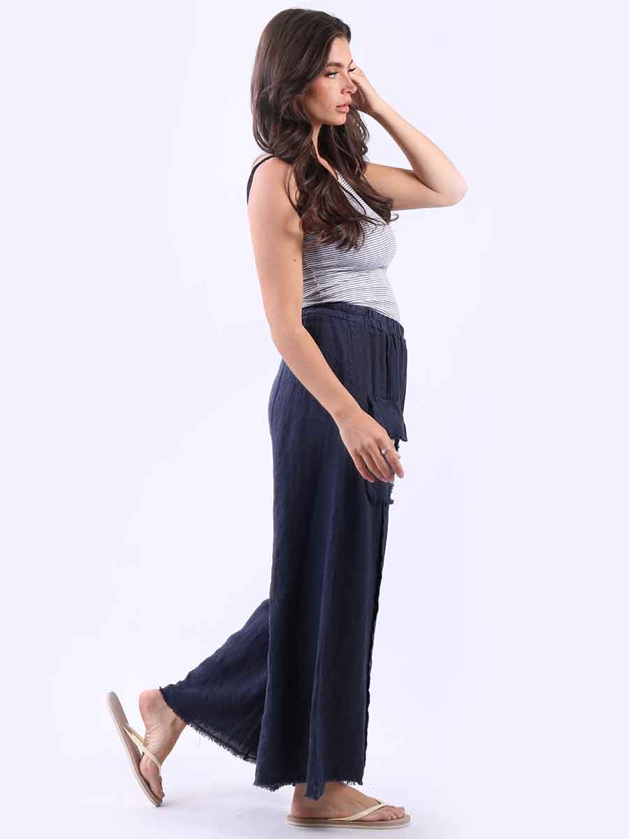 This refined Italian-made trouser, designed by Fashion boutique USA, has everything you need to elevate your everyday wardrobe. It is tailored from pure linen fabric for unmatched breathability and softness with basic features like an elastic waist, functional front pocket, and subtle raw edges. If you are looking for simplicity and sophistication in every outfit, these plain palazzos are a must-have addition to your wardrobe.