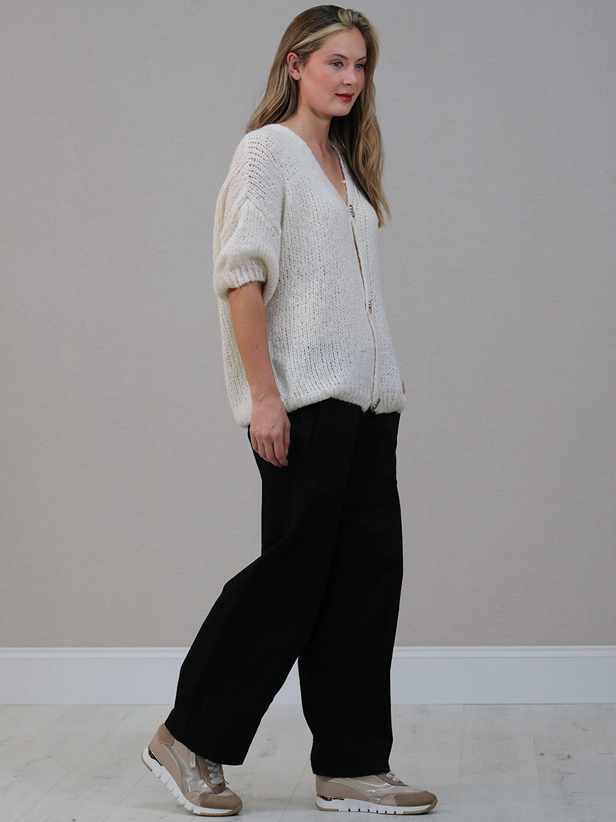 Solid Woolen Knit Button Down Cardigan